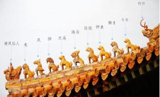 在皇權之上的古代,只有皇帝主持朝政的金鑾殿,可以安置10尊脊獸。其他地方,根據等級規模,一般安置1、3、5個單數位的裝飾獸。