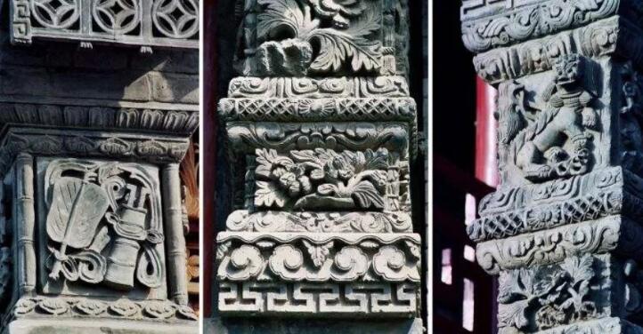 墀頭的裝飾簡(jiǎn)繁不一,簡(jiǎn)單的則全無(wú)雕飾,只疊合多層梟混線。而復(fù)雜的基本涵蓋了中國(guó)傳統(tǒng)文化中各類吉祥圖案,而且許多院落內(nèi)的墀頭中的圖案往往取材于同一類吉祥圖案或同一組人物故事,具有明顯的連貫性和統(tǒng)一性。