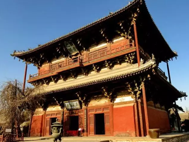 天津薊縣獨(dú)樂寺觀音閣,始建于唐,后經(jīng)遼統(tǒng)和二年(984年)重建。其木結(jié)構(gòu)技巧及建筑藝術(shù)成就被譽(yù)為中國古建筑之典范,它結(jié)合柱、梁及斗拱鋪?zhàn)鳎斐鲆蛔鶅?nèi)部呈空筒狀的樓閣,用以容納高大的立像。